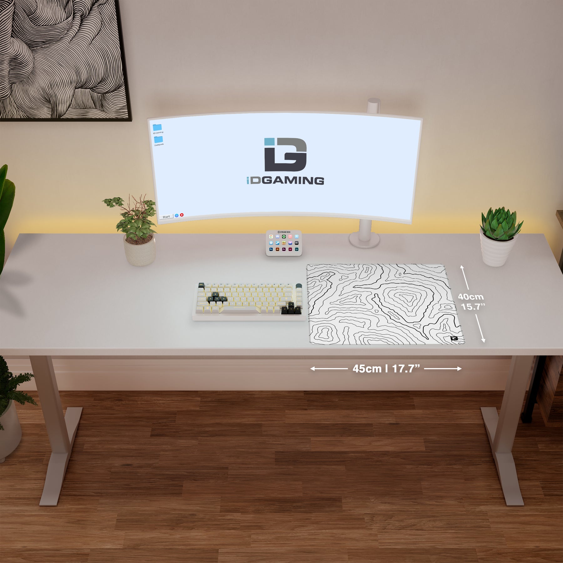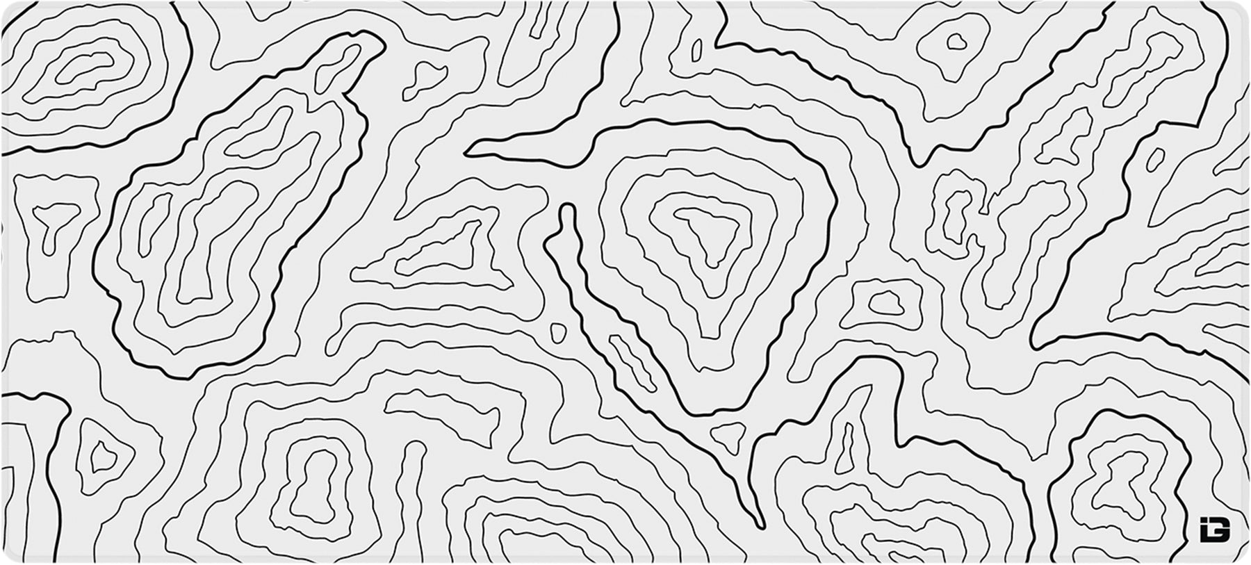 Topographic style desk mat in black. Topographic maps are geographical maps relating to the arrangement of the physical features of an area which turn into amazing mousepad designs.