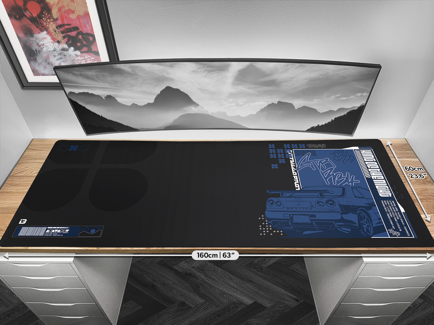 Mouse pad sizes available : 26cm x 21cm, 45cm x 40cm, 80cm x 30cm, 90cm x 40cm, 100cm x 60cm, 120cm x 60cm, 160cm x 60cm