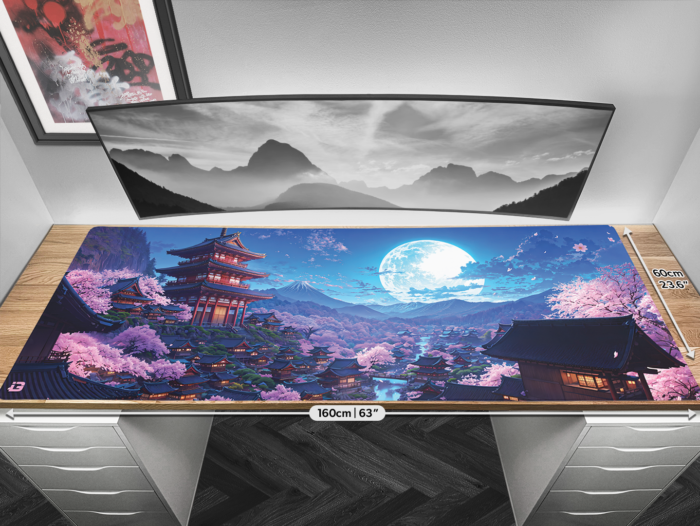 Mouse pad sizes available : 26cm x 21cm, 45cm x 40cm,80cm x 30cm, 90cm x 40cm, 100cm x 60cm, 120cm x 60cm, 160cm x 60cm